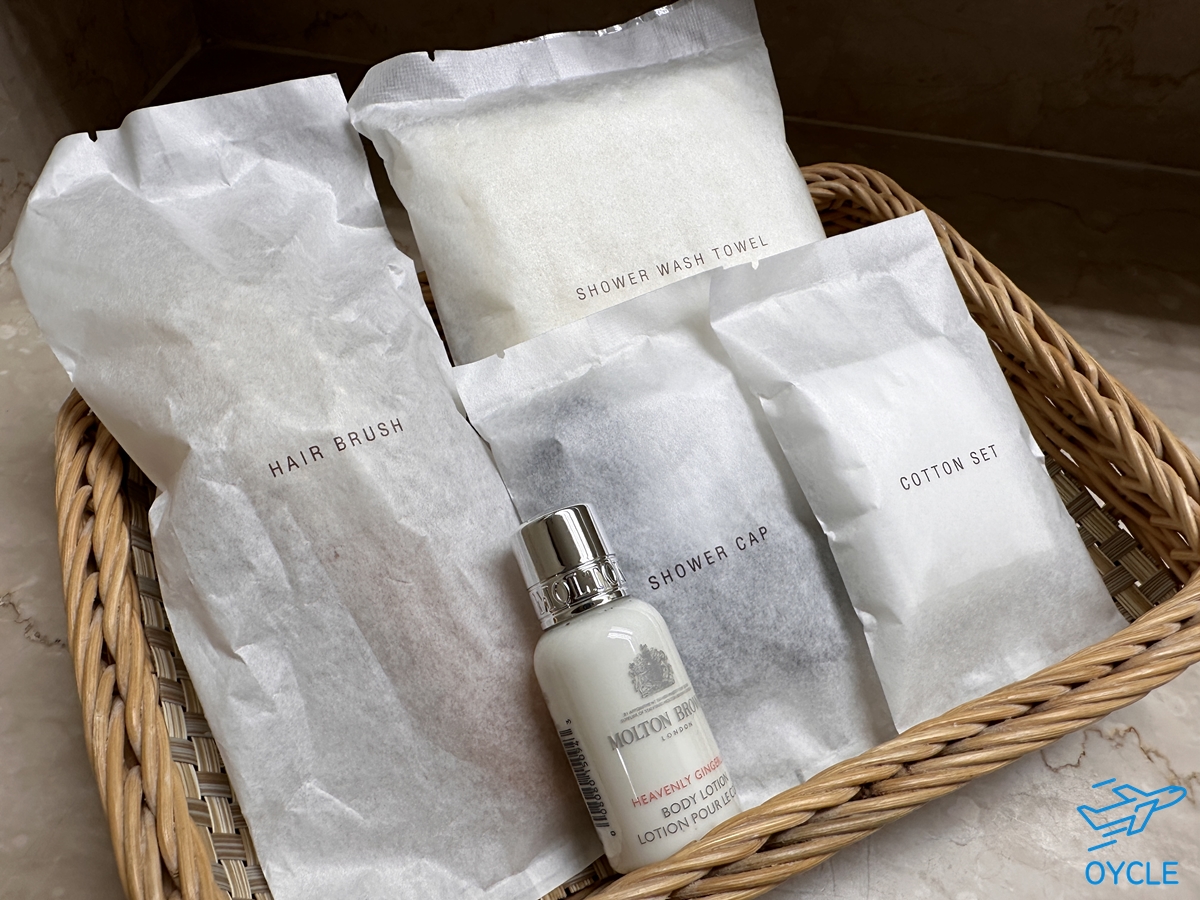 빗과 샤워타월, 그리고 몰튼 브라운 로션 등이 욕실에 제공되었다. 어메니티들이 빗까지 개별 포장된 점은 참 마음에 든다.
