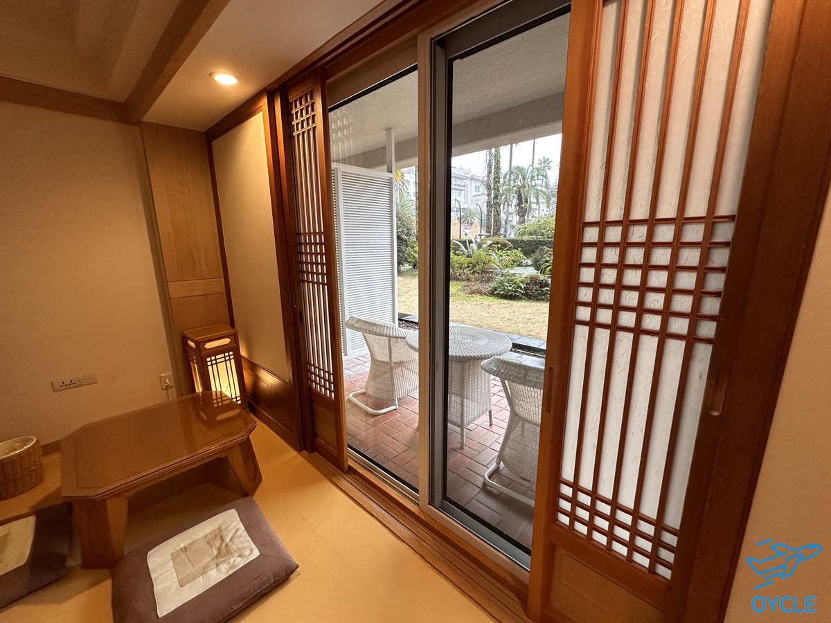 한국적인 테라스 창을 열면 제주신라호텔에서 잘 가꾸어 놓은 정원이 보이는 그런 객실이다.