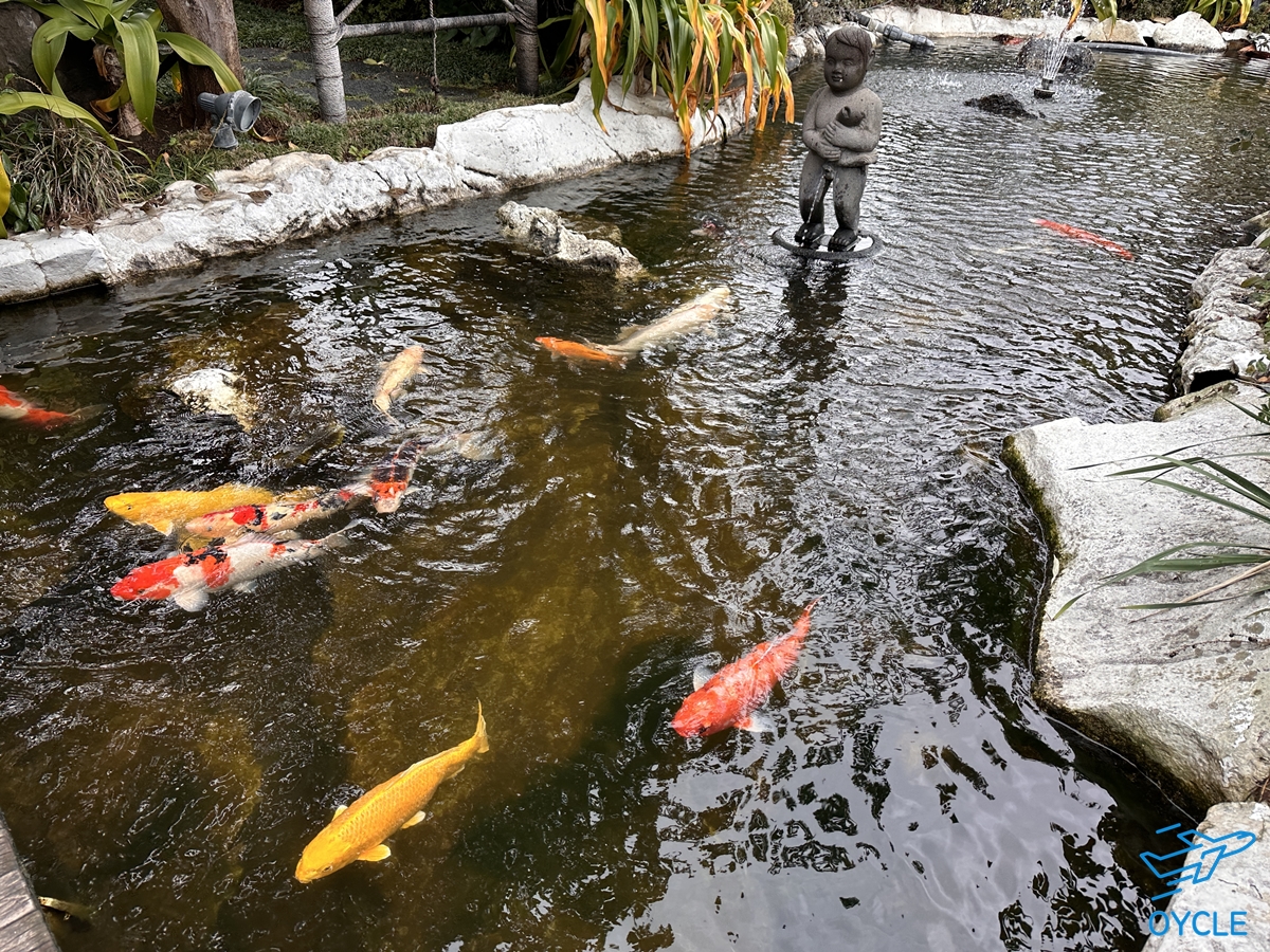 산책하며 연못의 비단잉어들에게 밥을 줄 수도 있다.