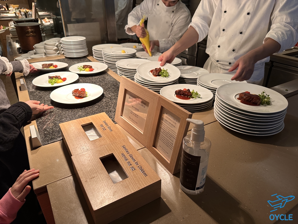 아마도 부페의 전체 음식중에 가장 인기가 많았던 것이 스테이크가 아닐까 싶다. 오픈하고 꽤 오랜시간 대기줄이 계속 있었던 코너이다. 물론 제공되는 스테이크의 맛과 질은 훌륭했다. 거의 대부분 두 접시 이상은 먹지 않을까 싶다.