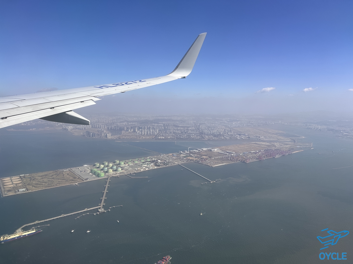 고도를 낮춰 인천공항 활주로에 접근하고 있다. 송도 LNG 기지와 송도신도시가 뿌옇게나마 잘 보이던 날이다.