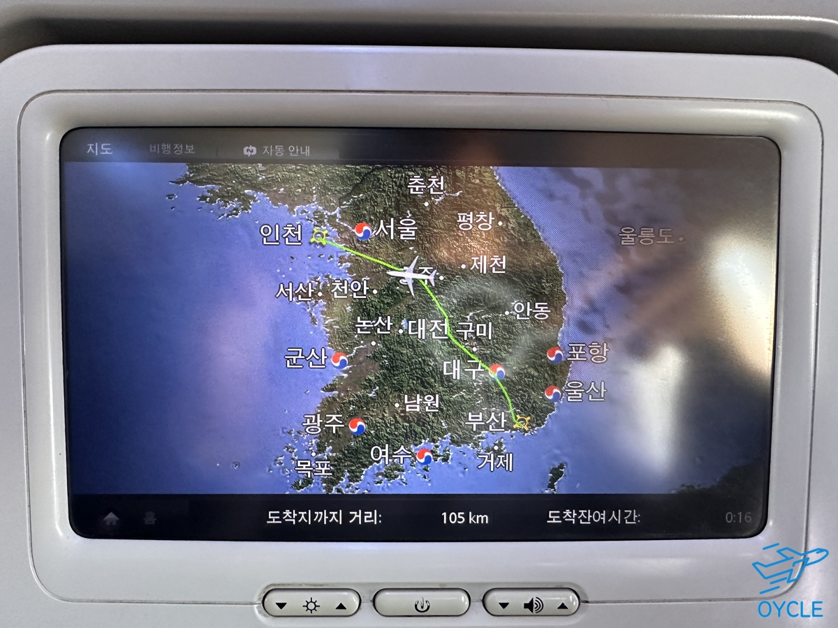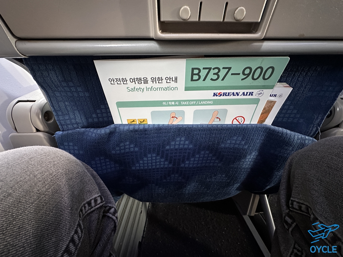 좌석 간격은 대한항공 기체 중에 가장 좁은 편이다. 국내선도 이것보다는 넓었는데 내항기는 정말 좁은 편이다.