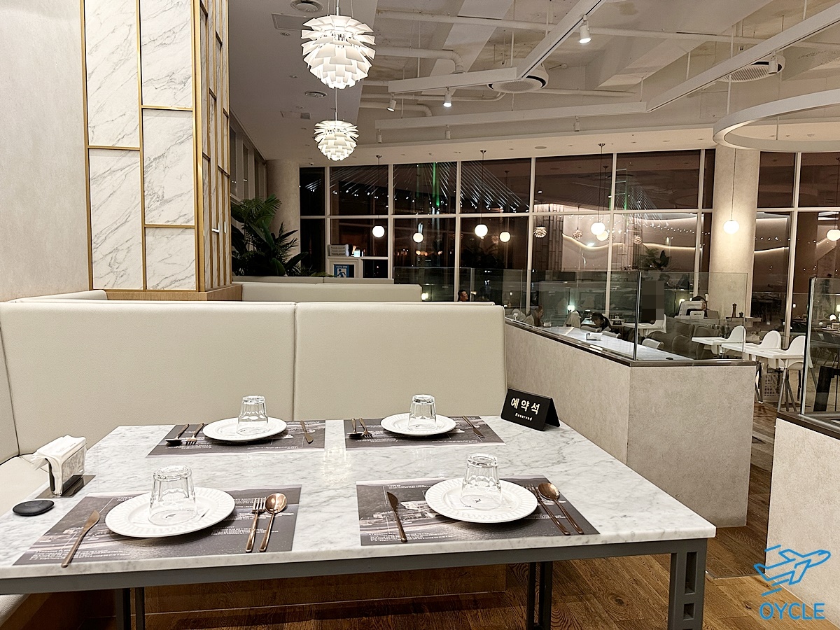 창가 좌석쪽으로는 바다와 마창대교가 보였는데 아마도 미리 예약하면 바다를 바라볼 수 있는 좌석에 예약이 가능하지 않을까 싶다.