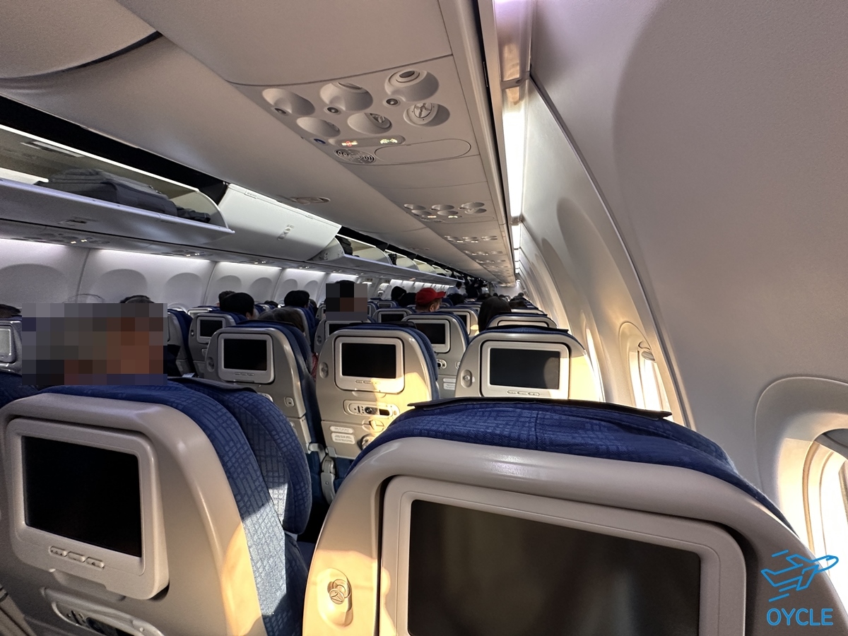 내항기로 운항중인 기종은 B737-900기종으로 3-3 좌석배열의 작은 항공기이다.