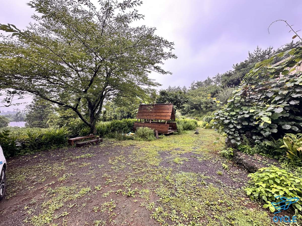 숙소 옆 마당으로는 주차장과 넓은 야외 마당 공간이 있다. 작은 오두막도 있다. 다만 습기가 많은 한 여름이라 모기 때문에 오두막에서 오랜시간 휴식을 갖긴 어려웠다.