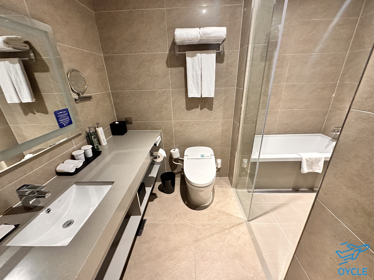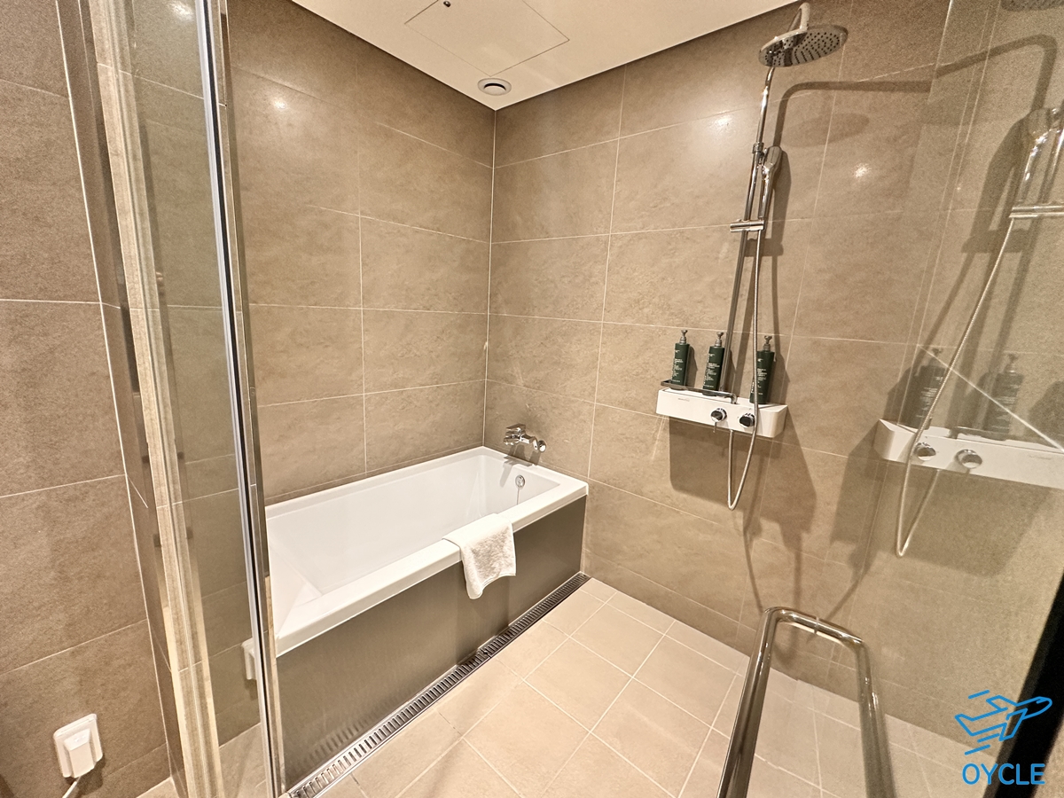 샤워실 옆에는 욕조가 있는데 기본 킹 룸에는 욕조가 없고 킹 디럭스 룸에만 욕조가 있다. 욕조있는 객실로 업그레이드 해줘서 피로도 풀고 잘 사용할 수 있었다.