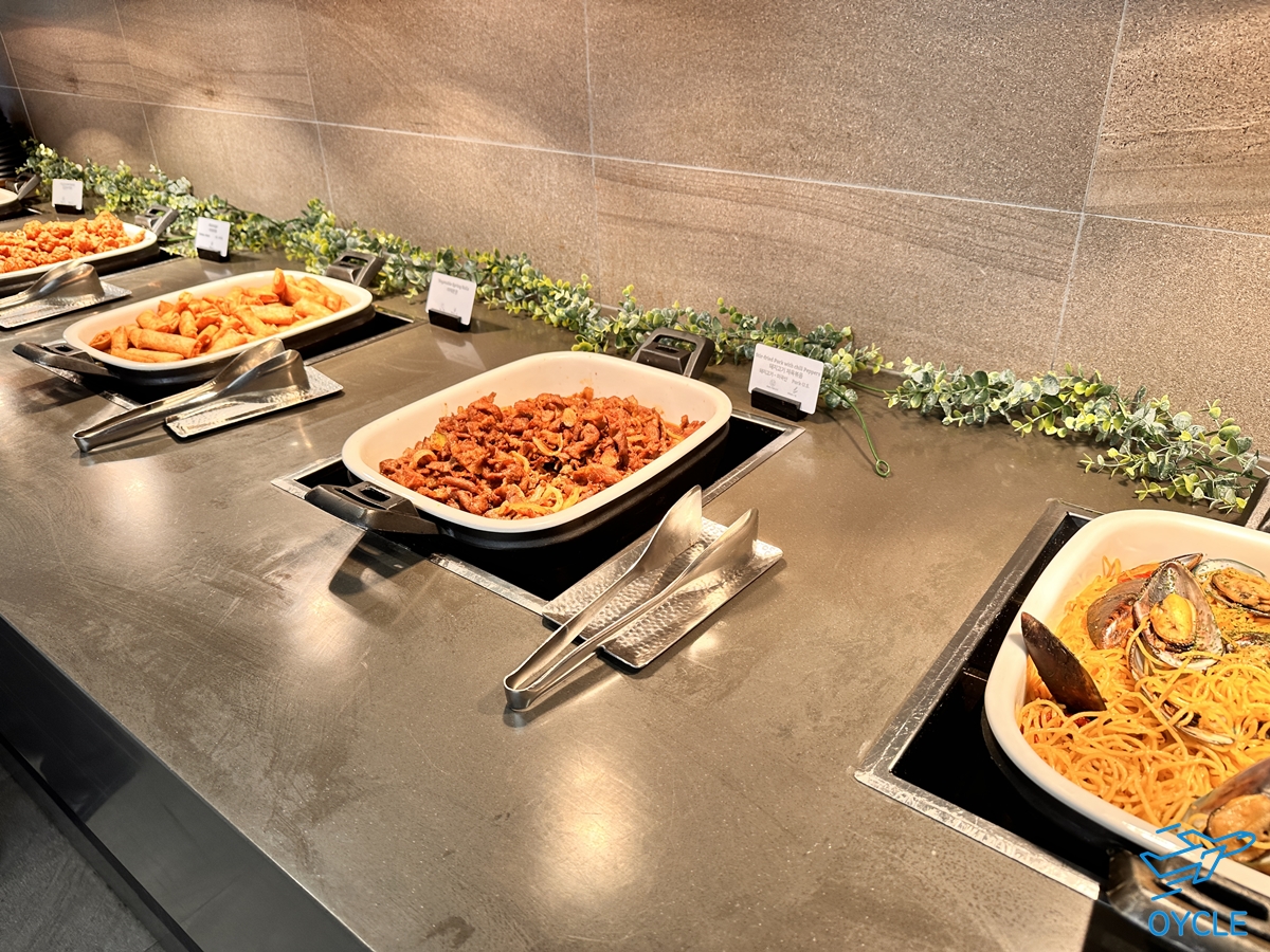 오믈렛, 완숙후라이, 반숙후라이, 삶은계란, 전류 등과 고기만두, 김치만두, 즉석쌀국수 등도 있다. 여기까지만 해도 가히 완벽하다고 할 수 있는 조식 구성이다.