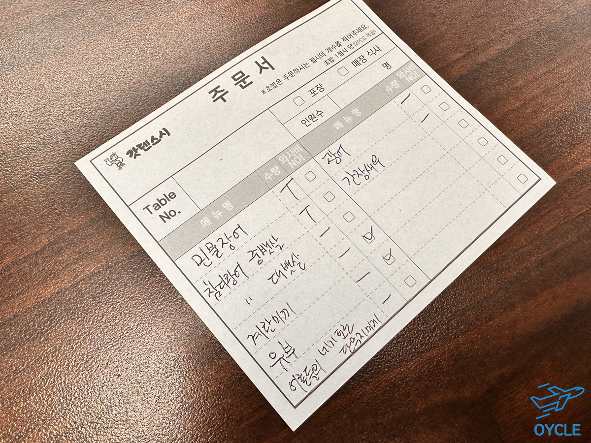 하지만 참치 뱃살과 같은 초밥은 트레이에 잘 돌아다니지는 않기 때문에 위와 같이 주문서를 작성해서 별도로 주문을 했다.