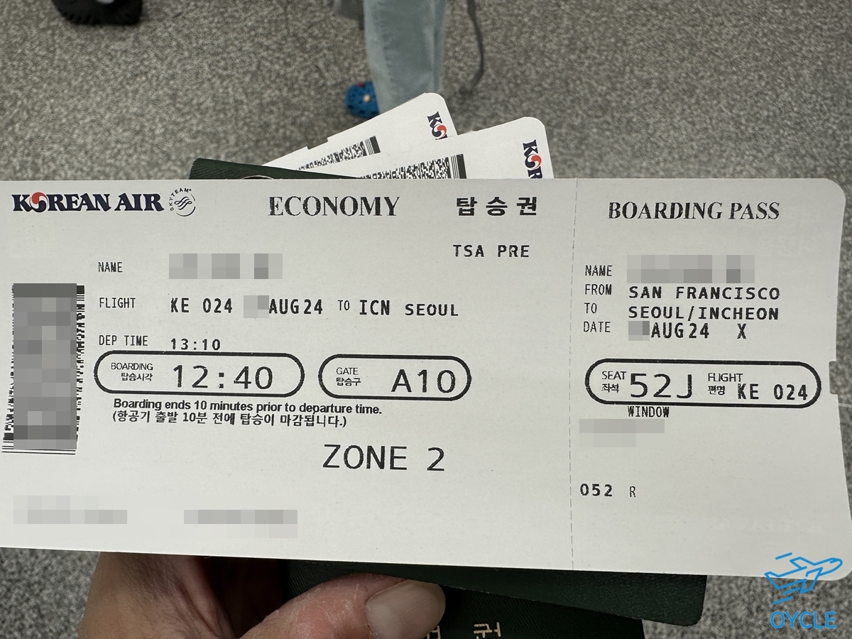 미국 가족여행을 마치고 샌프란시스코에서 탑승해 인천으로 향하는 KE024편의 탑승 후기이다.