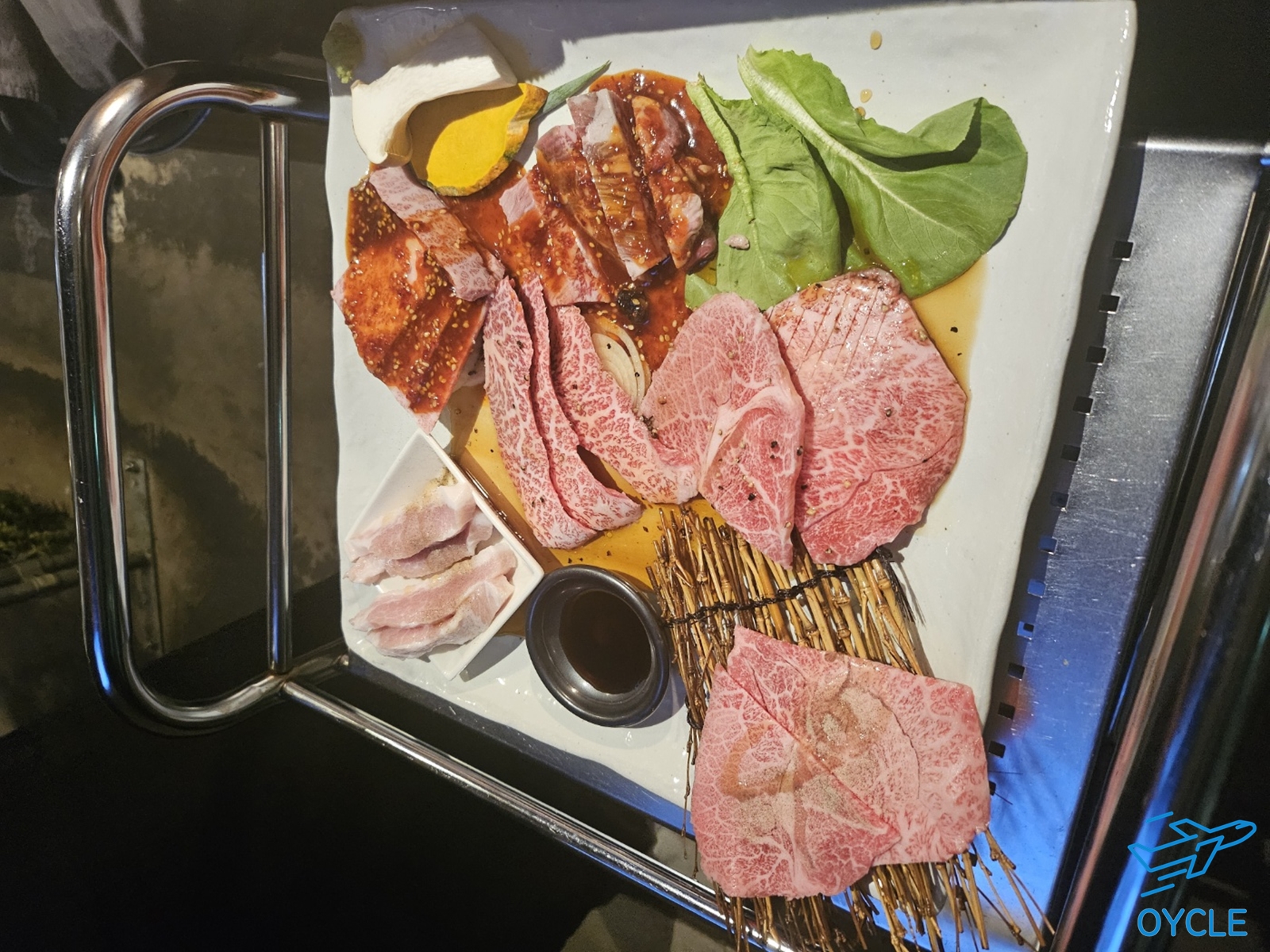 불 세기가 좋아서 고기들은 금세 익었고 골드 세트 두 개, 그리고 골드 세트에서 맛있었던 양념 고기를 추가로 주문했다. 또한 일본의 양 대창은 어떻게 나오는지 궁금해서 양도 주문해서 먹기도 했다.