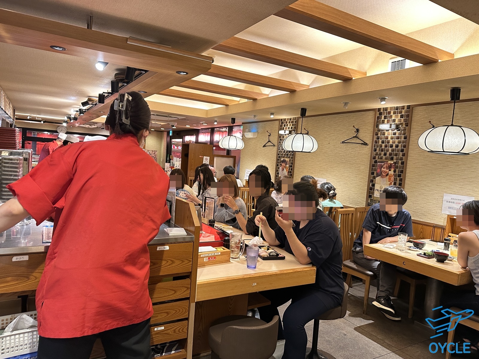 사카에스시 미츠테라점의 내부이다. 바 테이블과 4인 테이블로 구성되어 있고 사진찍은 곳에는 6인 테이블이 있다. 몇 년전에 방문했을 때 보다 테이블 석을 조금 더 늘려서 단체 손님을 더 잘 받을 수 있게 되었다.