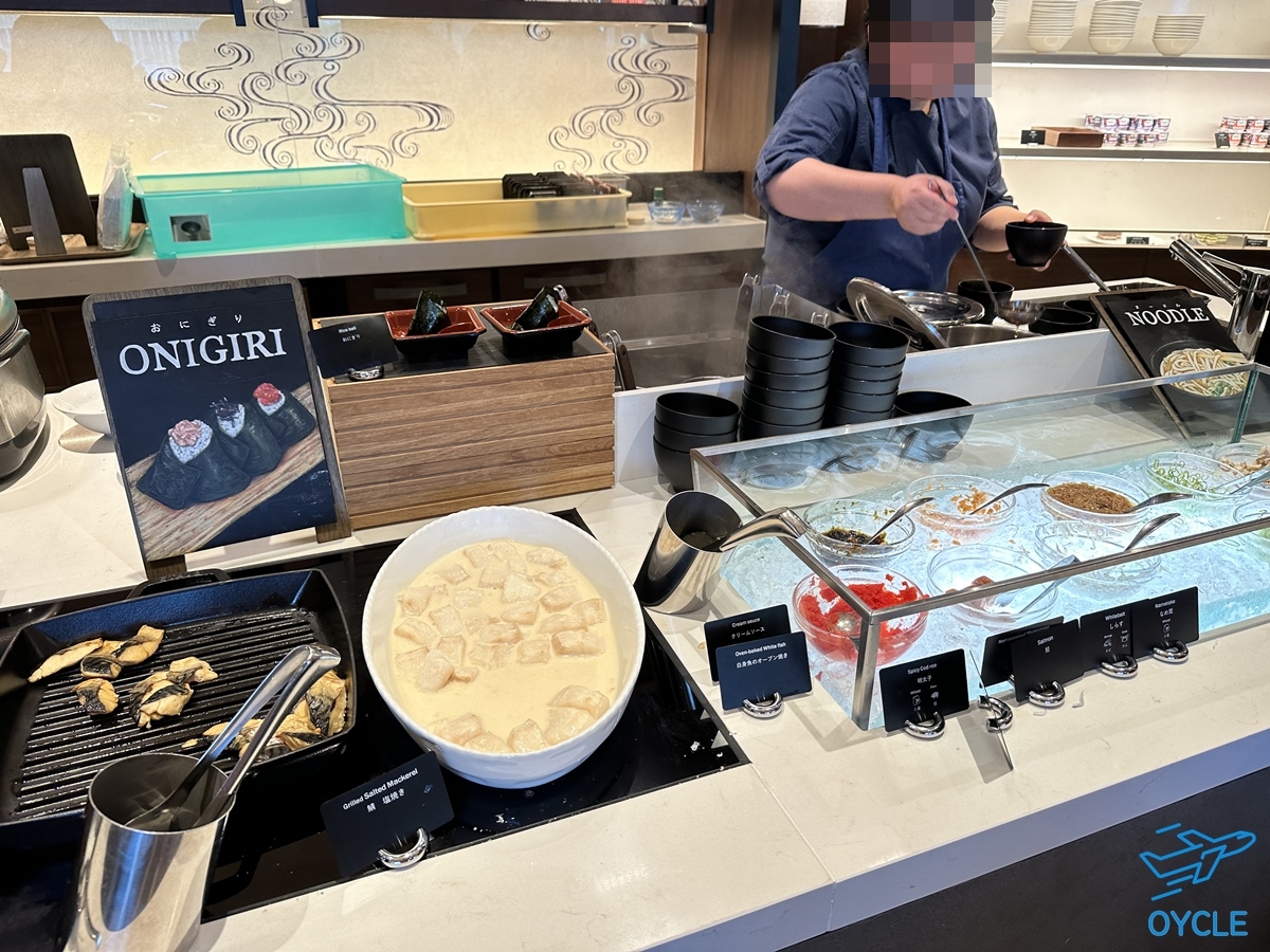 딱히 서양식이라고 하기는 어려운데 베이컨 소시지 정도가 있고 그 옆으로는 일본식 오꼬노미야끼도 제공이 되었다.