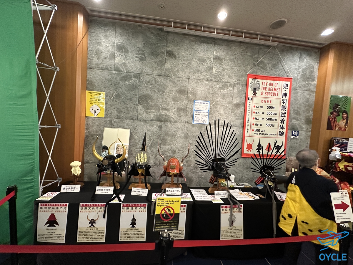 정상부 구경을 마치고 내려오는 길에는 일본 무사들의 전토 투구나 의상을 착용한 뒤 기념사진을 찍을 수 있는 코너도 있었다. 이용하지는 않았지만 특이한 모양의 투구와 의상들이 괜찮아 보였다.