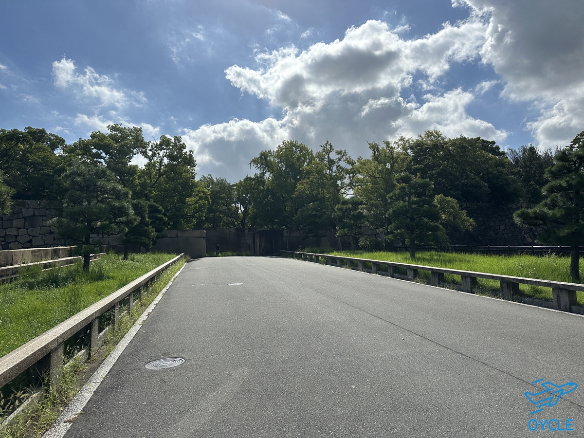 오사카성을 둘러싸고 있는 물의 색깔만 봐도 엄청나게 녹조끼가 있는게 매우 더움을 보여준다.
