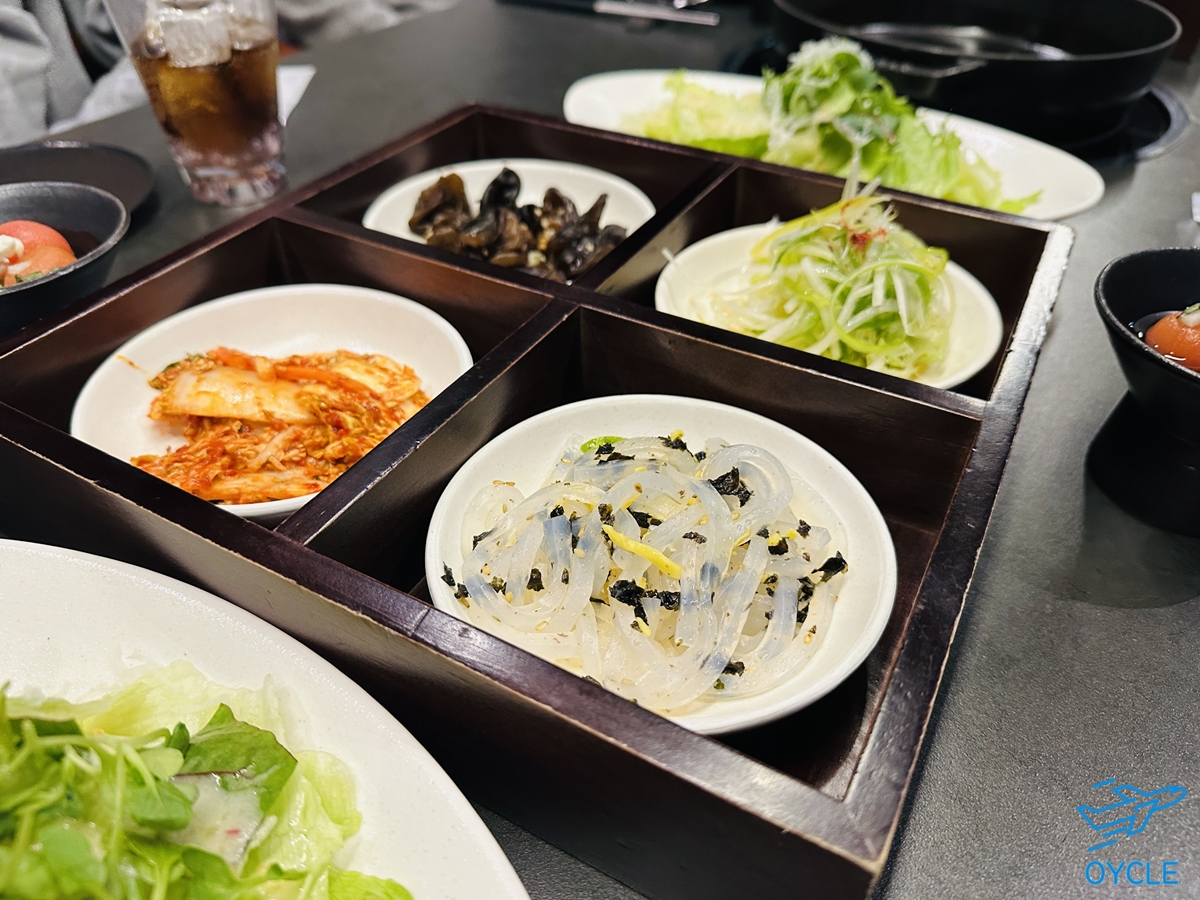 개별 룸으로 이동하면 위와 같이 테이블과 고기를 구워먹을 수 있는 팬이 준비되어 있다. 개인적으로 요리할 떄 인덕션을 선호하는 편은 아닌데 생각보다 팬 온도 유지 등 고기구워먹는데 꽤 괜찮았다.