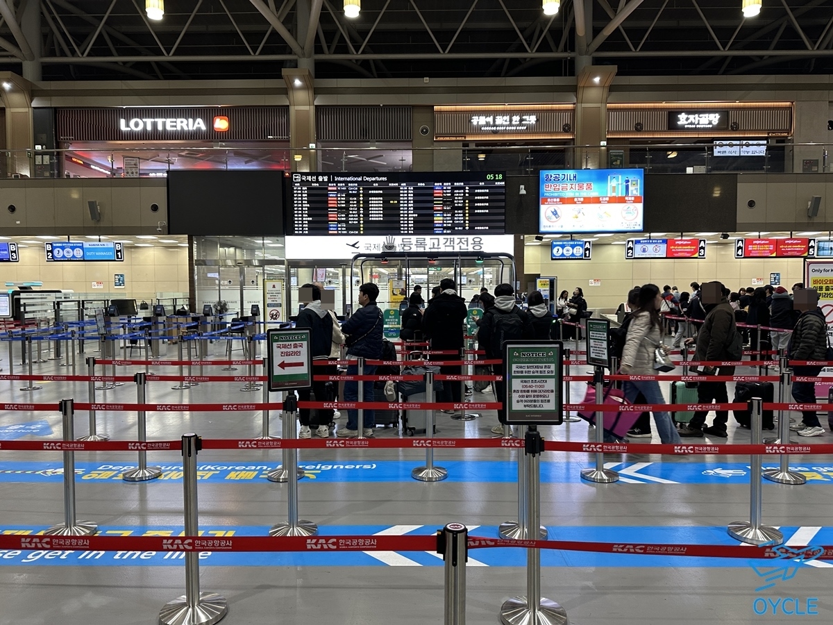 체크인을 거의 1등으로 하다보니 보안검색 대기도 거의 없었다. 보안검색은 5시 40분에 오픈했는데 6시 정도가 되었을때 보안검색 대기줄이 엄청 길어졌다. 확실히 일반적인 시기보다는 공항에 사람이 많은 것은 분명했다. 여유가 된다면 공항에 일찍 도착하는 편이 좋은 듯 하다.
