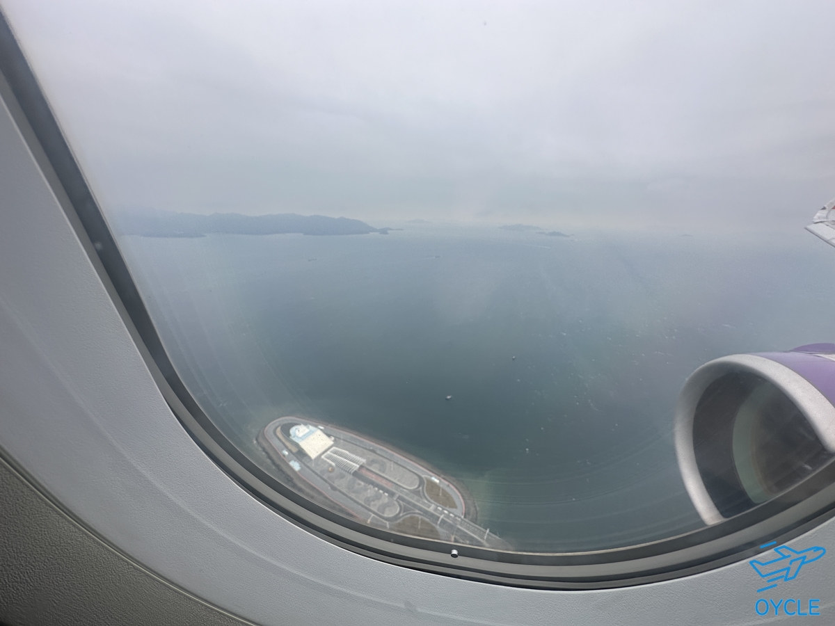 약 4시간의 비행 끝에 홍콩에 가까워졌다. 홍콩과 마카오를 잇는 해저터널이 보인다.