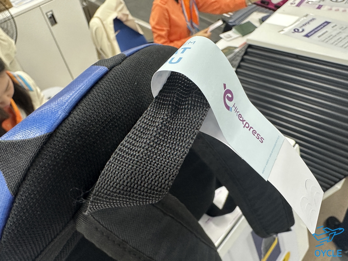 홍콩익스프레스를 예약하면서 에센셜 요금제에 위탁수하물을 하나 추가했더니 항공요금이 그렇게 싼 편은 아니었다. 그리고 기내 수하물의 경우 작은 가방 하나만 가지고 들어갈 수 있다고 안내받았는데 체크인을 하면서 위와 같은 태그를 가방에 붙여주었다. 홍콩익스프레스 홈페이지 안내를 보면 기내 휴대 수하물의 사이즈가 매우 작게 나와 있는데 적당한 크기의 가방은 어느정도 허용이 되는 듯 하다.