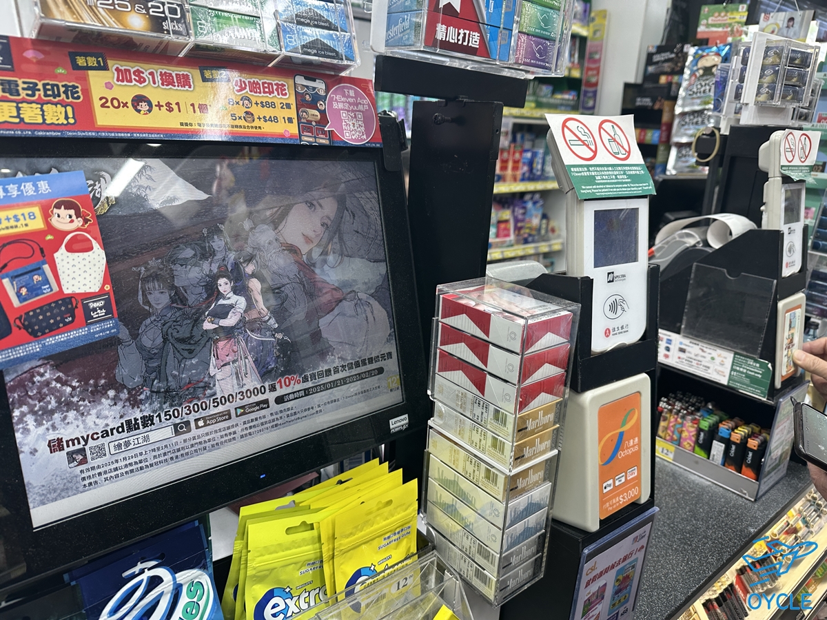 옥토퍼스 실물 카드의 경우 세븐일레븐 등의 편의점을 이용해서 충전하면 편하다. 홍콩 이곳저곳에 세븐일레븐이 위치하고 있으니 아무곳이나 들어가서 돈을 낸 뒤 위 사진의 주황색 부분에 카드를 대는 방식으로 충전을 하면된다. 또한 옥토퍼스 카드의 잔액을 이용해 세븐일레븐의 상품들도 구입할 수 있으니 홍콩을 떠나는 날이라면 잔액을 다 쓰고 가는 것도 좋은 방법이 될 수 있다.