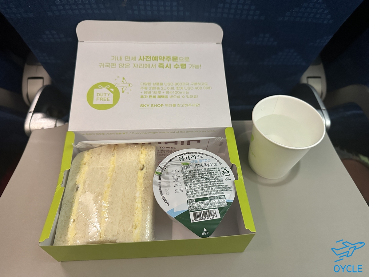 무료 기내식으로는 샌드위치와 요거트가 제공되었다.