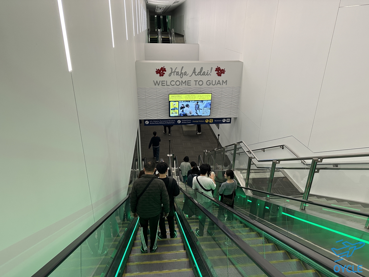 진에어가 착륙하는 새벽 시간대에는 괌에 도착하는 항공편이 전혀 없기에 괌 입국심사 대기 줄은 없었다. 미국 본토 입국할 때와 마찬가지로 왜 왔는지, 어디에서 자는지, 언제 돌아가는지 정도를 물어본 뒤 입국심사를 통과하고 괌으로 들어왔다.