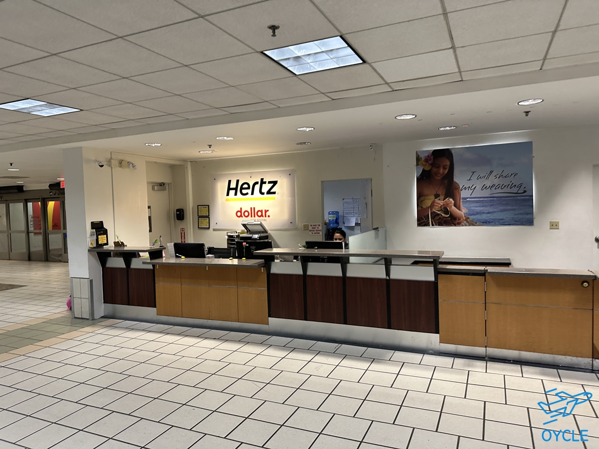 괌 허츠렌트카는 괌 공항 내부에 위치하고 있어서 공항에서부터 곧바로 차량을 렌트해서 이동할 수 있다. 괌 입국심사 이후 후 출구쪽으로 이동하면 렌트카 사무실이 있고 그 한켠에 허츠렌트카 카운터가 위치하고 있다. 이날 비행기가 지연되어 새벽 2시가 넘은 시간에 괌에 도착했지만 허츠렌트카 공항지점은 24시간 영업하고 있어서 큰 문제없이 렌트할 수 있었다.