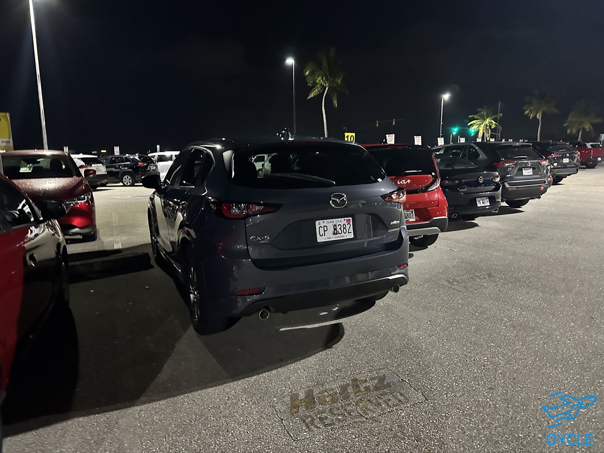 예약 당시 허츠렌트카 그룹 X에 해당하는 Intermediate SUV를 예약했고 예시로 마쯔다 CX-5가 보여졌는데, 주차된 차량들을 쓱 둘러보니 괌 허츠렌트카 지점은 차량의 다양성이 높지는 않은 듯 했다. 아이 포함 4명이 탑승할 목적이기에 딱 이정도 차량이면 적당하다.