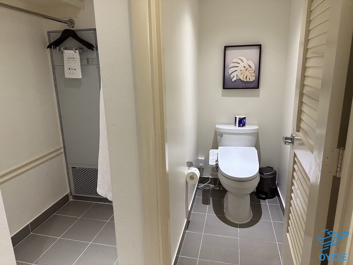 욕실의 옆쪽으로는 옷걸이, 금고, 옷장 등이 있는 구역과 별도의 문으로 분리된 변기 구역이 있었다.