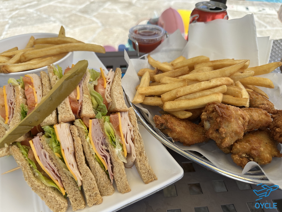 수영장에서 노느라 대부분의 점심은 햄버거나 위 사진의 샌드위치, 치킨 등으로 떼운듯하다. 전반적으로 가격대가 높은 편은 아니라서 큰 부담없이 주문해서 먹었다. 다만 괌도 미국이니 10%정도의 팁을 추가해서 결제했다.