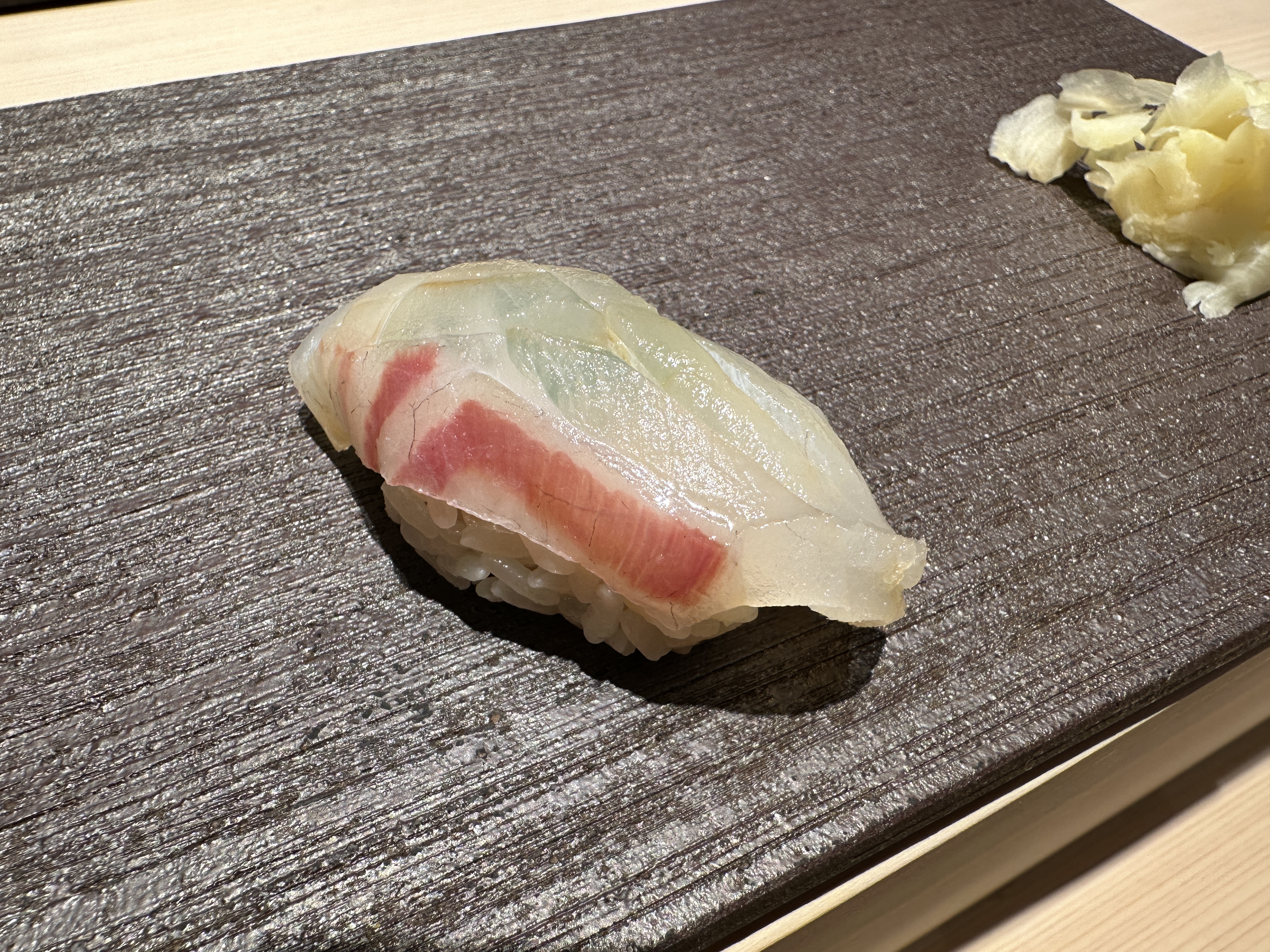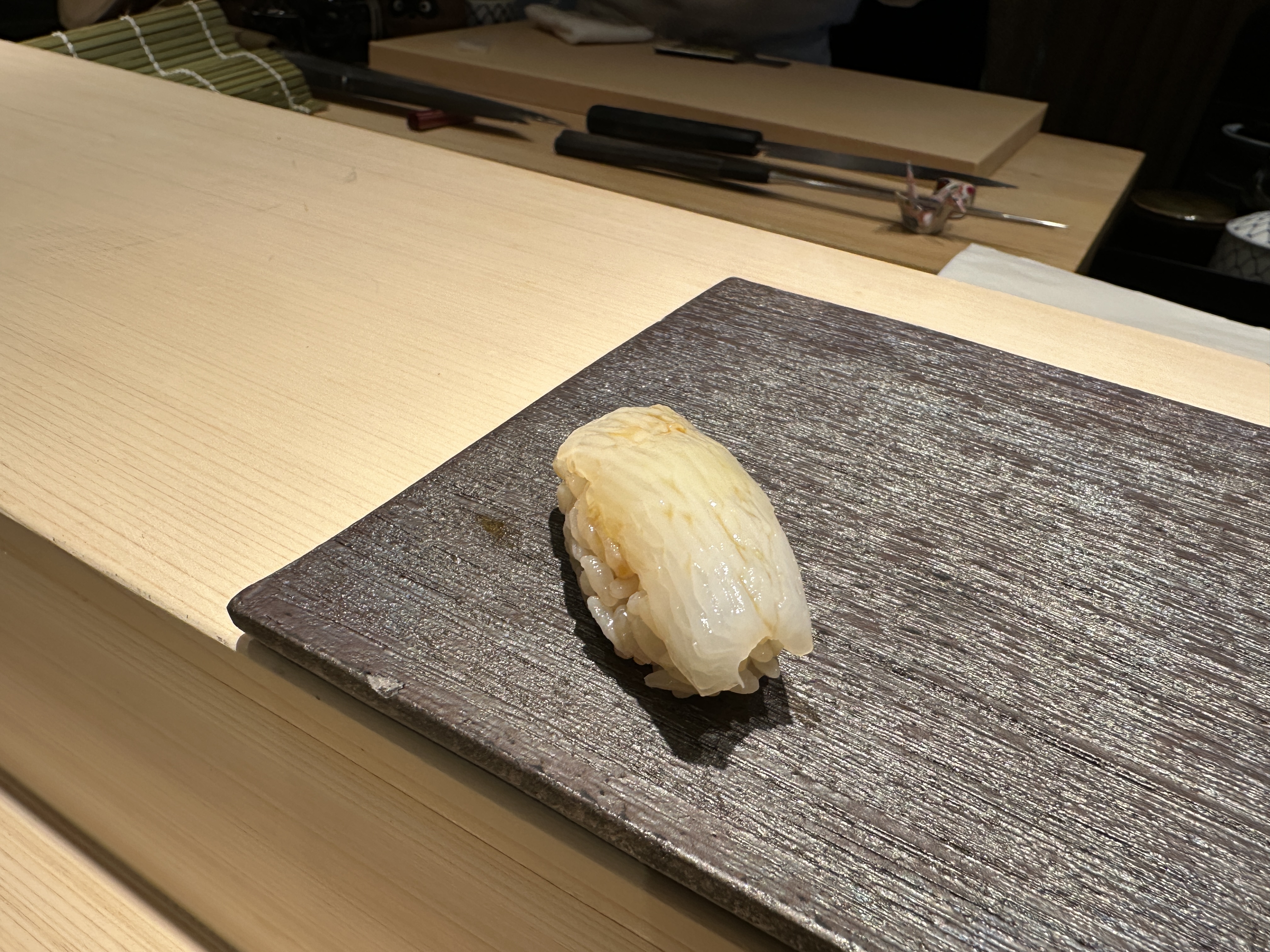 한치였는데 두족류 스시의 특성 상 어디가서 먹어도 비슷하게 맛있다. 스시소라는 이번에 처음 방문해봤는데 샤리의 풍미가 좀 특이했다. 말로 표현하기 어려운데 좋은 특유의 향도 있고 씹힘도 있어서 오래 기억에 날 듯 하다.