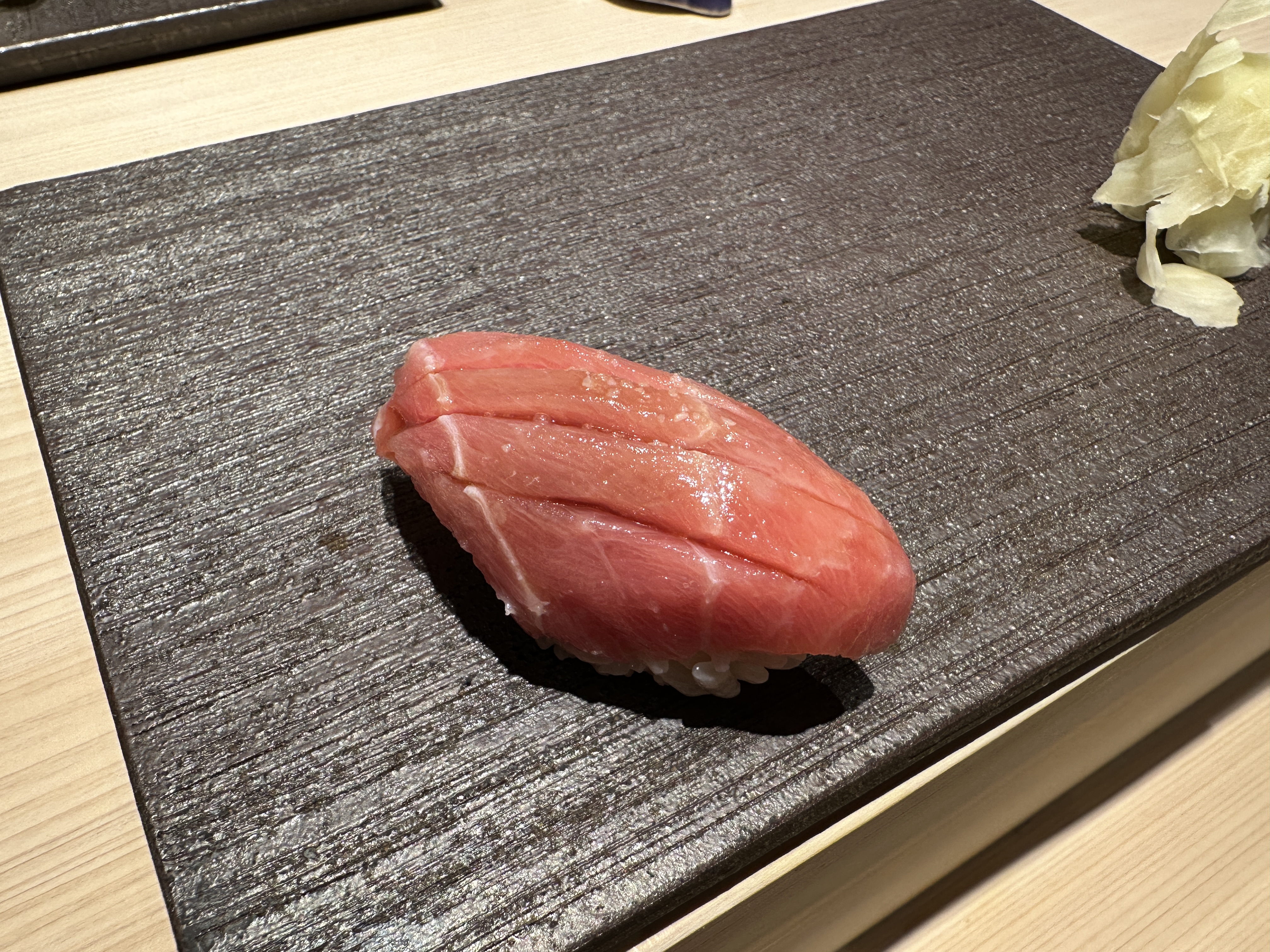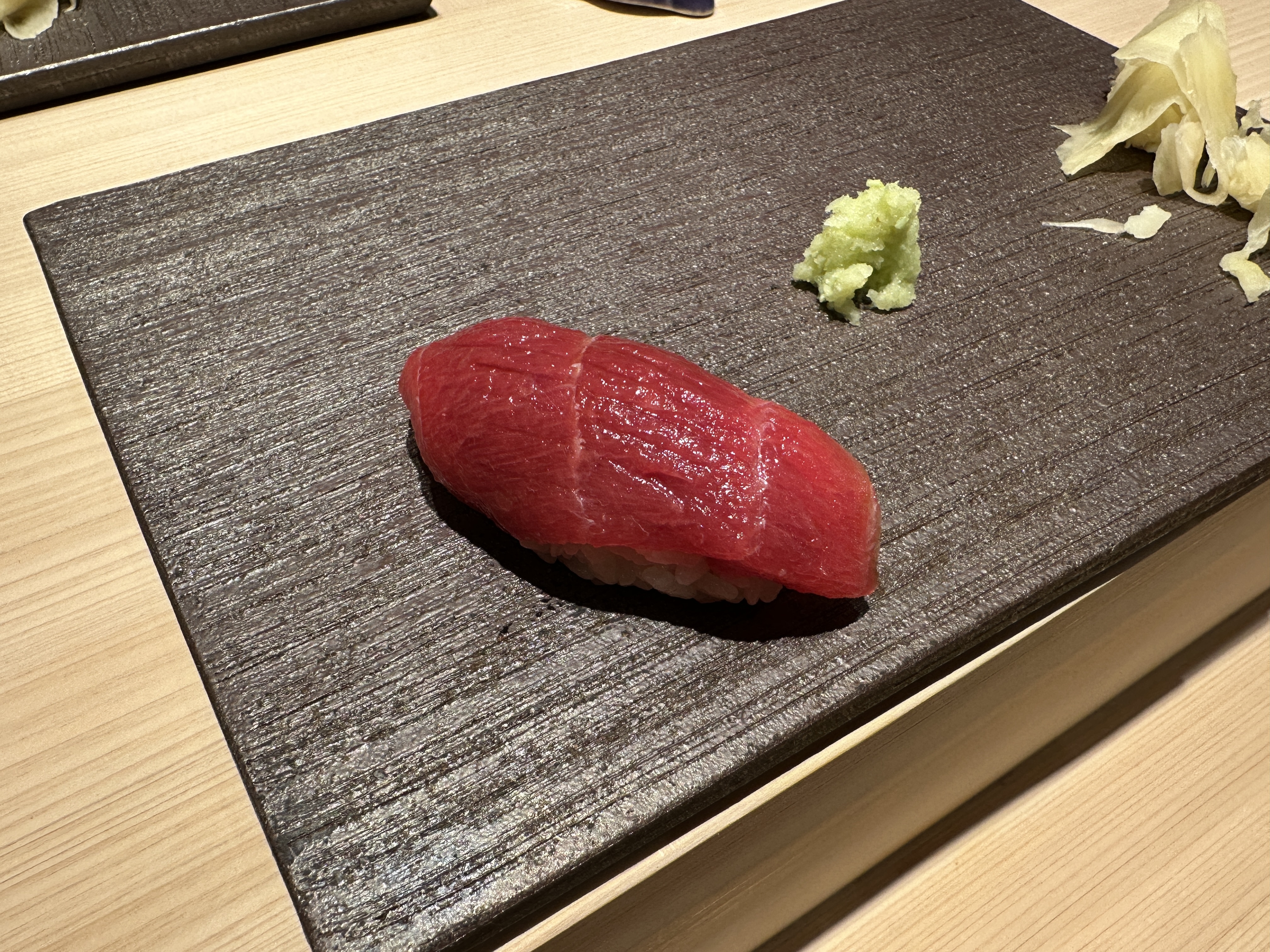 아까미(참치 등살)가 다음 차례로 나왔는데 아주 달달한 안키모를 먹고난 이후인지 큰 감흥은 없었던 스시이다. 안키모를 예상보다 너무 맛있게 먹어서 그 다음 차례는 뭐가 나와도 다 비슷했을듯 하다.