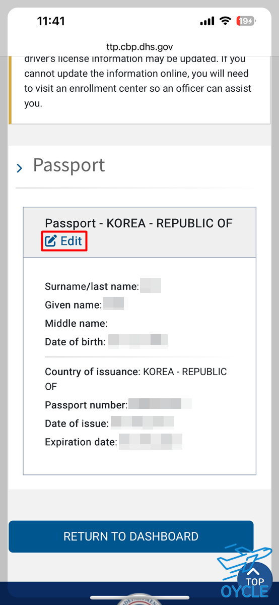 그리고 8월 미국 입국을 앞두고 글로벌엔트리에 등록되어 있는 여권번호를 업데이트하였고 그 과정을 남겨보려고한다.