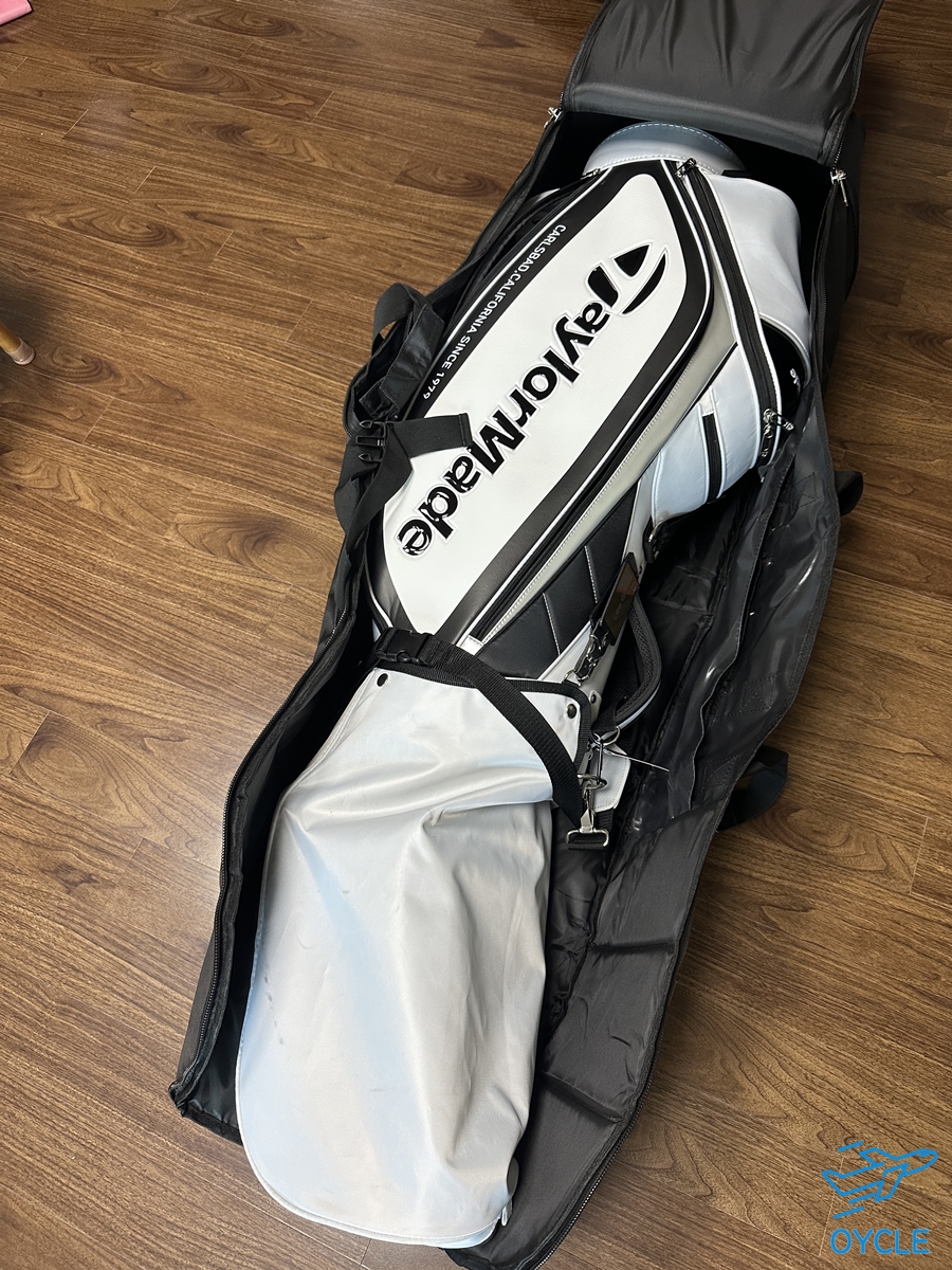 캐디백을 넣고 항공커버의 지퍼를 닫으면 여행 준비 끝