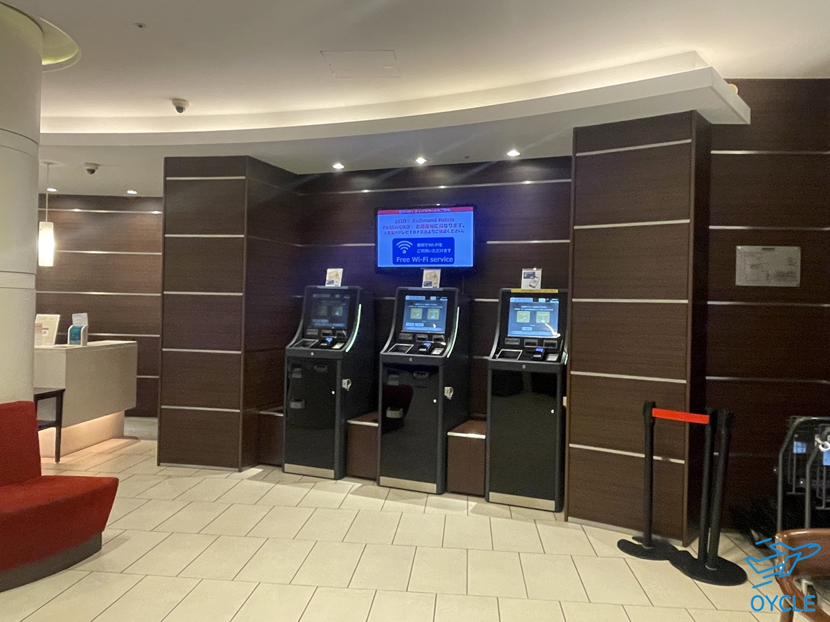 체크인은 로비 한켠에 있는 키오스크를 통해 이루어진다. 호텔의 예약은 익스피디아에서 했는데 예약 당시에 세금은 불포함이라고 했는데 그래서 인지 체크인을 하면서 200엔을 신용카드로 결제했다.
