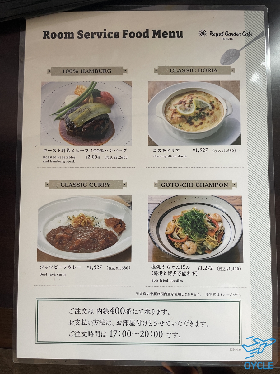 나름 괜찮은 가격에 룸서비스도 제공된다. 주문해서 먹지는 않았지만 이 정도 가격이면 귀찮을 때 주문해서 먹을만하다.