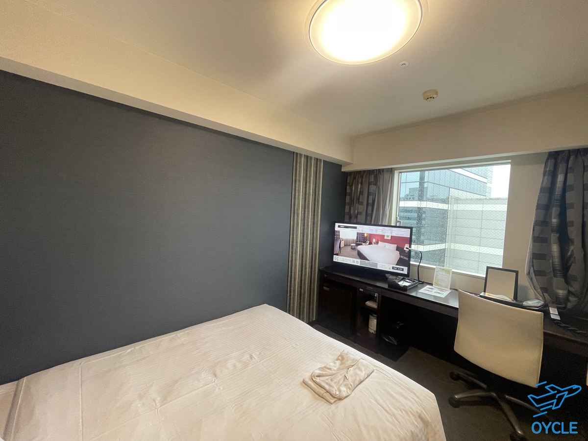 가장 저렴했던 더블룸. 침대있고 책상있고 창문있고 땡이다. 짧은 일본 여행할 때 가성비 숙소로 작지도 크지도 않은 사이즈이다.