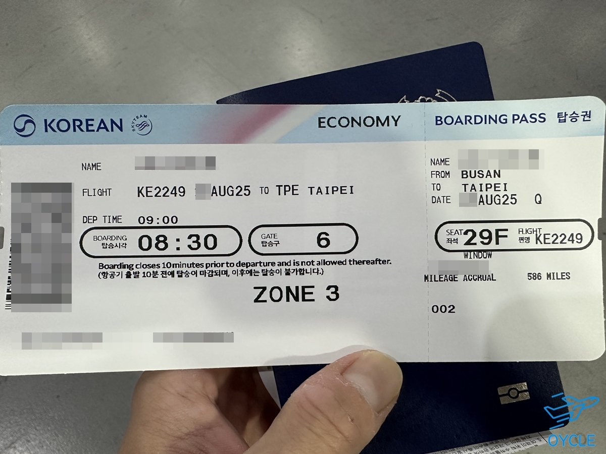 부산 김해공항에서 대만 타오위안 공항까지 탑승한 대한항공 KE2249편의 이코노미석 탑승후기이다.