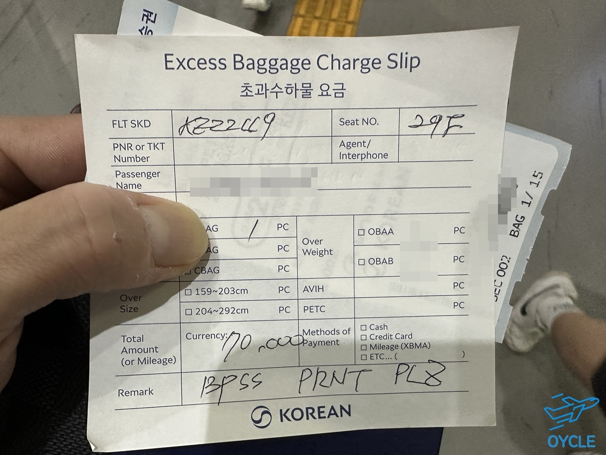 위탁수하물이 한 개만 위탁가능했는데 나의 경우 대만에서 미국까지 이동해야하는 스케줄이었고 골프백이 하나 있었기 때문에 그에 대한 초과수하물을 결제했다. 초과수하물 가격은 7만원이었다.