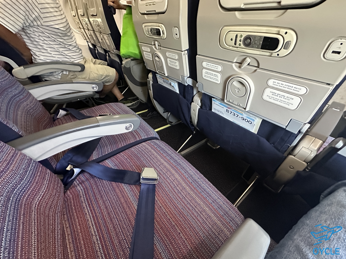KE2249편의 항공기는 B737-900 기종이었고 3-3 배열의 좌석이며 좌석간 간격은 그리 넓지는 않았다. 4시간 비행을 넘는다면 조금 불편할 정도이다.