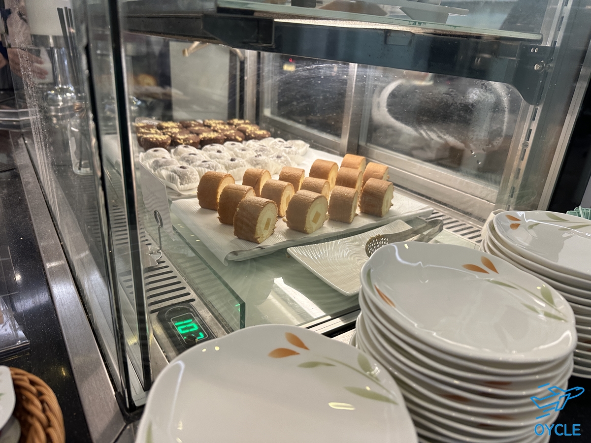 생각보다는 많이 복잡했던 에바항공 라운지. 입구에 들어서서 직원의 안내를 받아 자리를 잡고 아침식사를 위해 라운지 음식들을 살펴보았다.