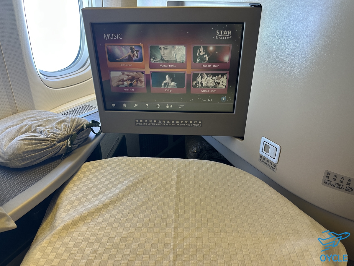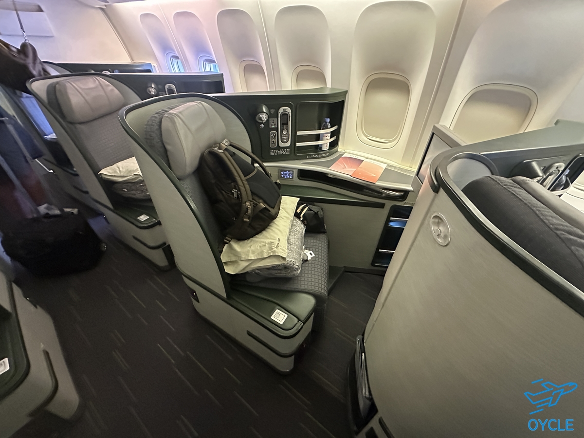 에바항공 BR006편의 비즈니스 클래스는 위 사진과 같이 대각선을 바라보고 앉아가는 구조이고 좌석은 1-2-1 배열이었다.