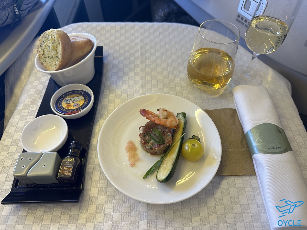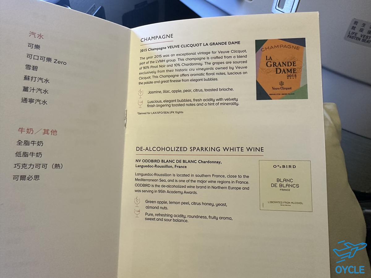 기내식은 미리 사전 주문을 했으니 식전 주 정도만 선택했다. La Grande Dame 2015 샴페인. 개인적으로 입맞에는 잘 안맞았다.