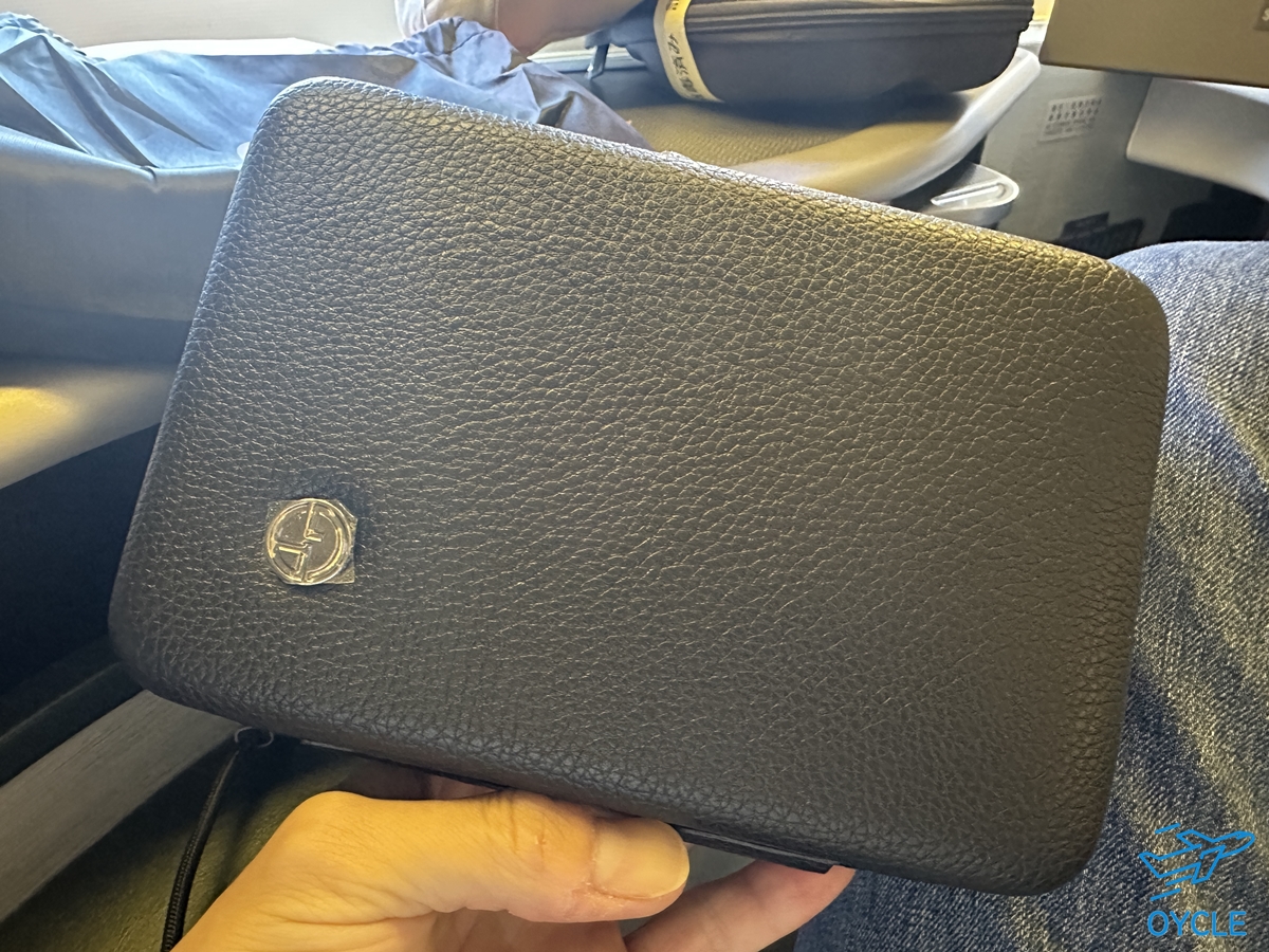 제이슨 우 제품의 잠옷이 제공되었다. 비행기에서 입지는 않았고 미국 호텔에서 잘 사용했다.