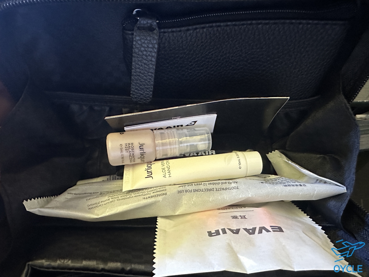 미스트, 핸드크림, 치약칫솔, 안대, 귀마개 등이 들어있다. 조르지오 아르마니 미니 파우치도 같이 들어있어서 동전지갑으로 잘 사용중이다.